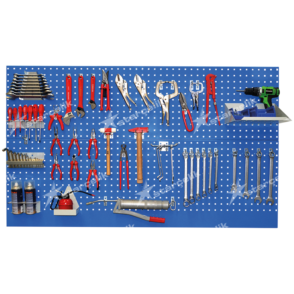 İstek ve fikirleriniz doğrultusunda takımların, küçük parçaların ve çalışma malzemelerinin yerden tasarruf edilmesini ve her şeyden önce net bir şekilde depolanmasını sağlar. Farklı boyutlarda ve tasarımlarda satışa sunduğumuz duvar alet panolarımız ve aletlerinizi kolaylıkla asarak düzenlemenizi sağlayan alet-takım asma kancaları ile özellikle endüstri, atölyeler ve tüm çalışma ortamlarında her zaman ihtiyacınız olan düzenli alanlara sahip olursunuz ve bu alanları istediğinizde tekrar tekrar düzenlersiniz.